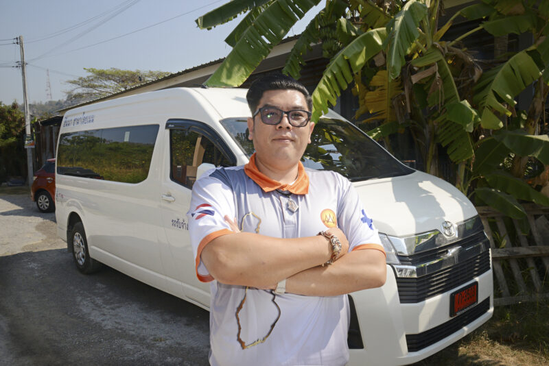 ”Aikaisemmin hän ajoi pick-up-autoa ja kuljetti tavaraa ympäri Thaimaata. Sitten ajattelimme, että onko järkevää minun olla yksin täällä lapseni kanssa, kun hän on koko ajan tien päällä. Sitten päätimme laajentaa firmaa ja ostimme minibussin. Nyt hän ajaa sitä ja kuljettaa asiakkaita muiden muassa retkille.”