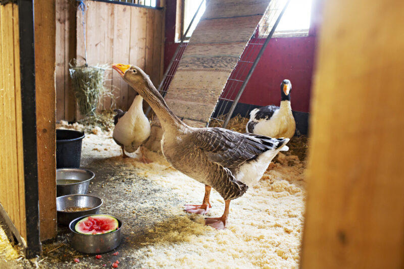 Kuvaushetkellä Hannu, Sigrid ja Ingrid ovat vielä toistaiseksi lintuinfluenssasääntöjen takia sisällä tilavassa tallissa, jossa niitten kanssa asustaa minisikoja ja vuohia. Hanhilla on suloiset oltavat karsinassaan. Siellä niillä on turvallinen olo, sillä hanhille on tehty heinästä oma pesä, jota suojaa räsymattokatos. Karsinassa on myös verhot, jotta hanhet eivät häiriintyisi ohi kulkevista ihmisistä ja katseista. Tarjolla on monenlaista ruokaa, kuten vesimelonia. Joskus harvoin pesään pullahtaa myös muna, joka on lähes kolme kertaa niin suuri kuin kananmuna.