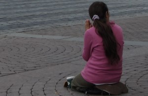 Kaikenikäiset kansalaiset lahjoittivat kerjäläisnaiselle rahaa. Heitä oli kuitenkin tämän päivän aikana melkoisen vähän. Läheisestä Mäkkäristä poistuvallakin oli kerjäläiselle lahjoituksensa: hän sujautti ranskalaiset naisen käteen.