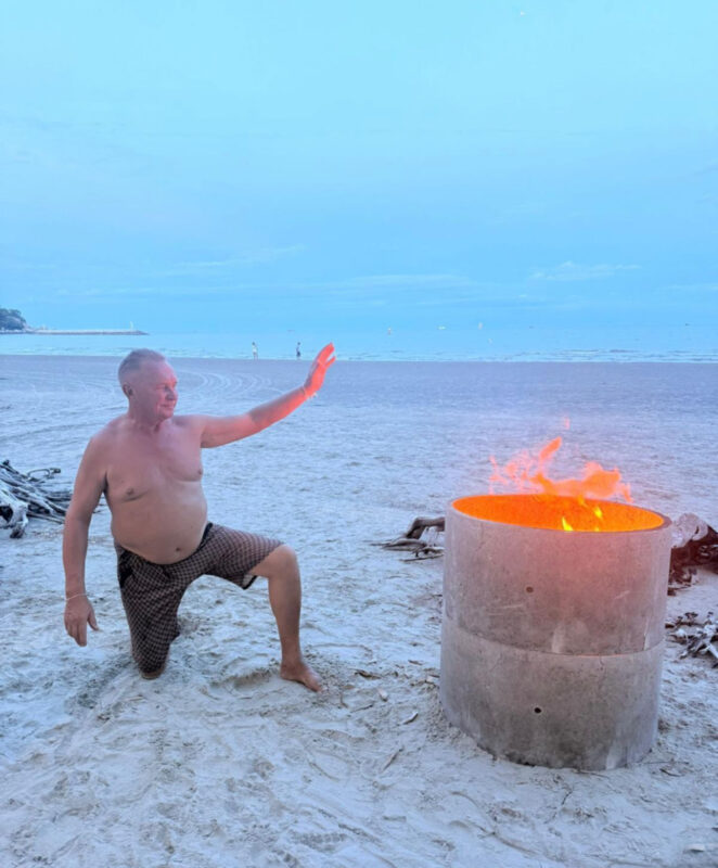 Erkki Kellosalo ja hänen vaimonsa Jintana Kellosalo järjestivät suomalaiset juhannusjuhlat saunatiloissaan Thaimaan Hua Hinissä.