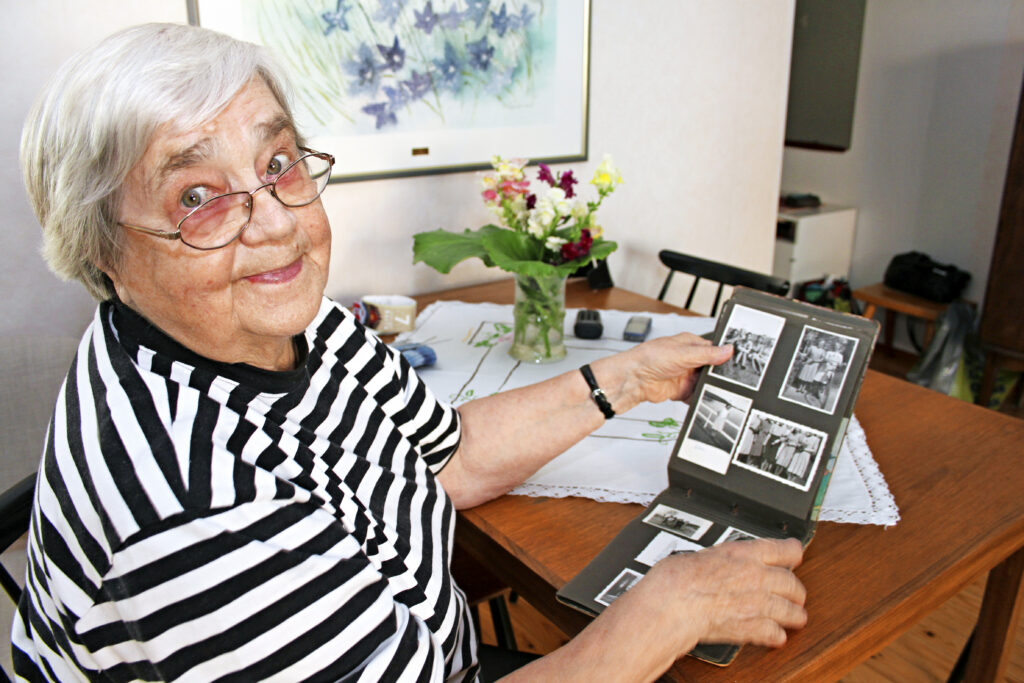 – Vanhimmat lotat pitivät meistä nuoremmista hyvää huolta. Päivät olivat pitkiä, mutta opettavaisia. Maatalon tyttärenä osasin luonnollisesti perusasiat, kuten kahvinkeiton ja siivoushommat. Sen sijaan alkeellisissa olosuhteissa taiteilu vaati opettelemista. Kotona olin tottunut puhtaaseen kaivoveteen ja kuiviin hellapuihin, joten näiden puuttuminen vaati sopeutumista.