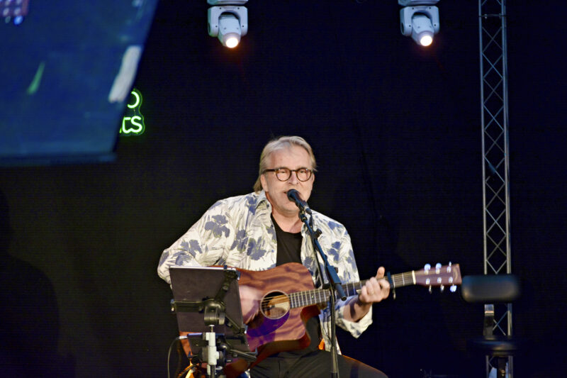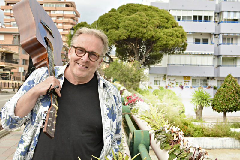 Muusikko Joel Hallikainen, 63, soittaa kitaraa ja suoltaa lyriikkaa Espanjan Fuengirolassa ravintola Kukon lavalla. Menossa on Hallikaisen tulevan keikan soundcheck, jonka avulla tarkistetaan, että musiikki ja laulu kuuluvat tasaisesti kaikkialla ravintolassa.