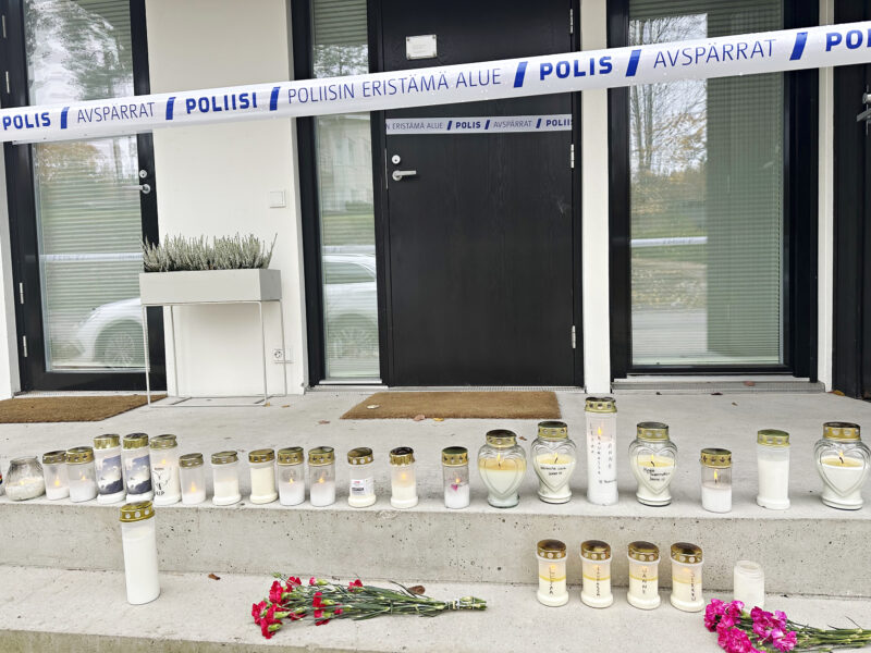 Janne Puhakan läheiset ja ystävät olivat tuoneet Henttaan talon rappusille kynttilöitä surman jälkeen.