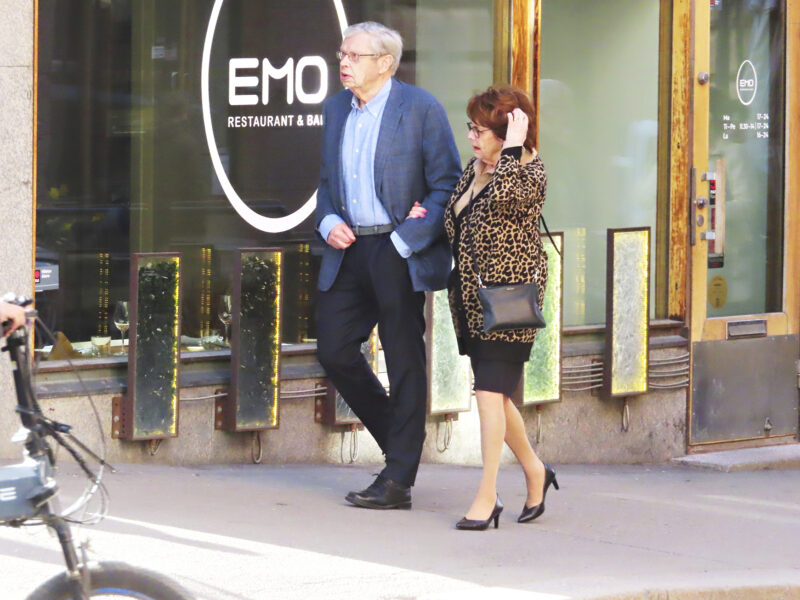 Viihdelegenda Pirkko Mannola käänsi katseita tyylikkäässä leopardijakussa puolisonsa, tasavallan presidentti Alexander Stubbin isän Göran Stubbin rinnalla Helsingin Kaartinkaupungissa.