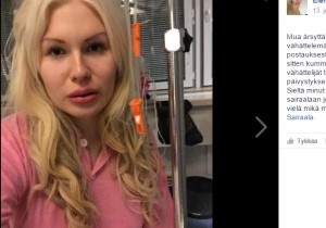 -Mua ärsyttää kun ihmiset tulevat aina vähättelemään toisten sairauksia (…) Ilmeisesti se mun tila ei sitten kumminkaan ollut niin kevyt kuin jotkut vähättelijät taas epäili, kun kuume nousi Malmin päivystyksessä levätessä lähes 40 asteeseen. Sieltä minut sitten tuotiin ambulanssilla Meilahden sairaalaan, jossa olen nyt osastolla, en osaa sanoa vielä mikä minulla on, mutta toivottavasti saan pian tietää. Sain täällä suoneen kipulääkettä ja kuumetta laskevaa lääkettä ja nyt pystyin ottamaan kuvan ja kirjoittamaan Facebookiin. Se ei silti tarkoita ettei tila ole vakava (…) Nyt piti avautua, kun oon ihan v-n hermorauniona täällä, kun en itsekään tiedä mikä mun sisäelimissä on vikana, Elena kirjoitti.