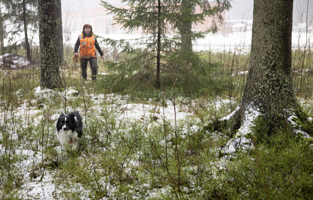 ”Äkkiä kotiin vaihtamaan kamppeet ja Huuko auton kyytiin etsintätehtävää suorittamaan. Laitoin Huukolle valjaat päälle, ja sanoin, että lähdetään etsimään. Kyllä se heti huomasi, että nyt lähdetään töihin. Ja vaikka kuinka itse kuvittelisi olevansa aivan rauhallinen, niin koira vaistoaa myös ohjaajan adrenaliinin nousun.”