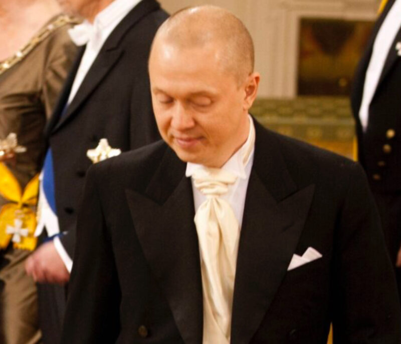 Edesmenneen presidentti Martti Ahtisaaren poika Marko Ahtisaari esitteli linnan juhlissa uuden puolisonsa vuonna 2023.