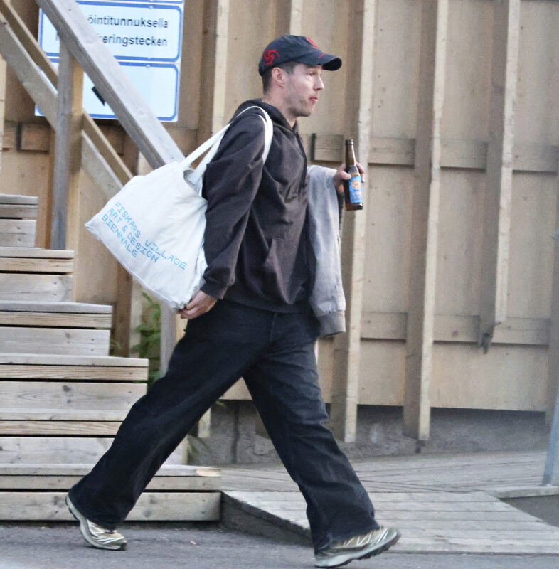 Laulaja-näyttelijä Olavi Uusivirta nappasi olutpullon matkaansa poistuessaan Helsingin Allas Sea Poolilta keikkansa jälkeen.